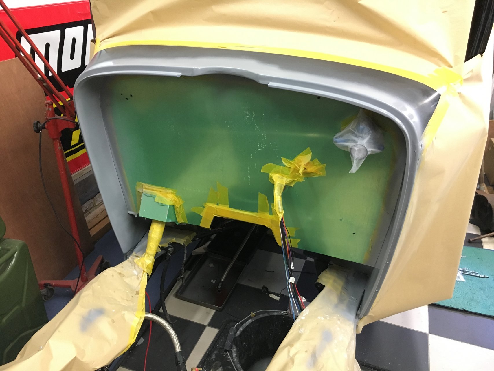 Got some primer on the front cowl ready for top coat. There was a load of screw holes and chips in the area from the fitting of the LPG kit that I removed.