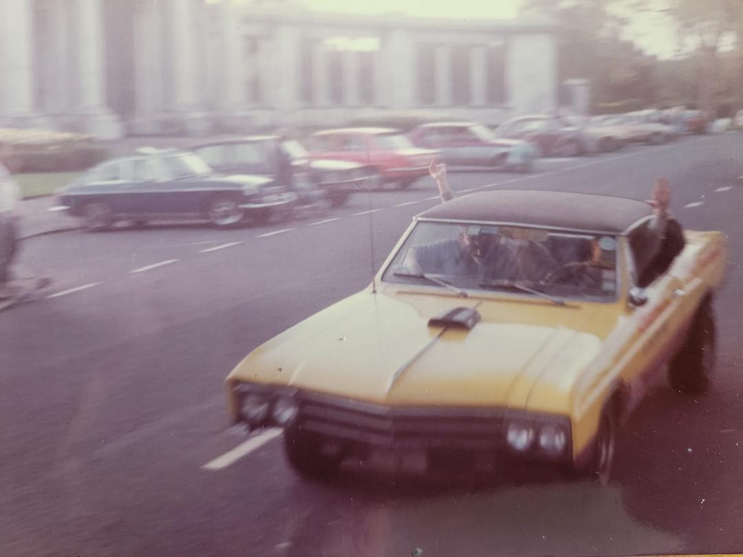 If I recall correctly, that's "Splash" in the passenger seat. So called because of his size and references to his method of swimming pool entry - I wonder what happened to them?
